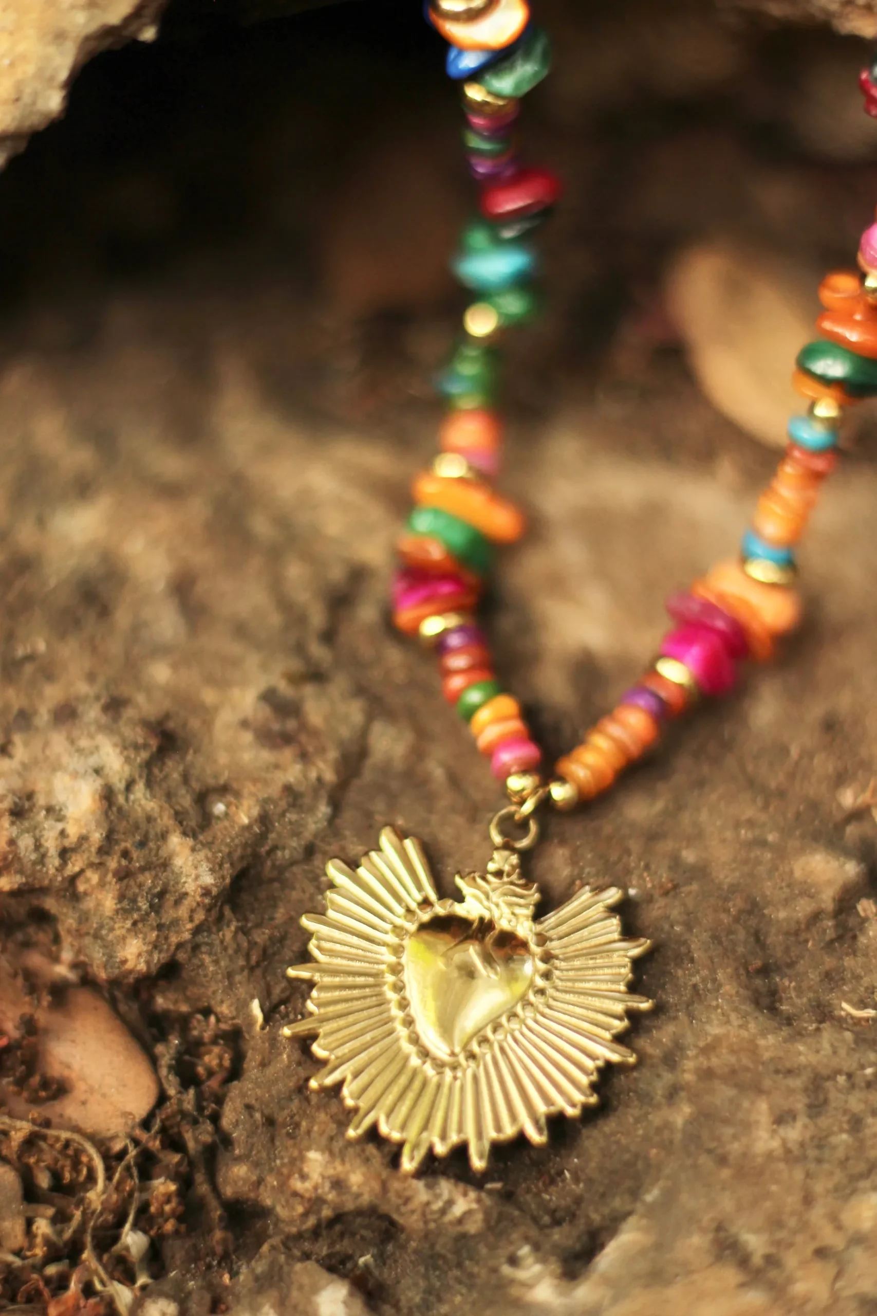 Colgante de piedras con Corazón de Jesús colgando en ACERO dorado.