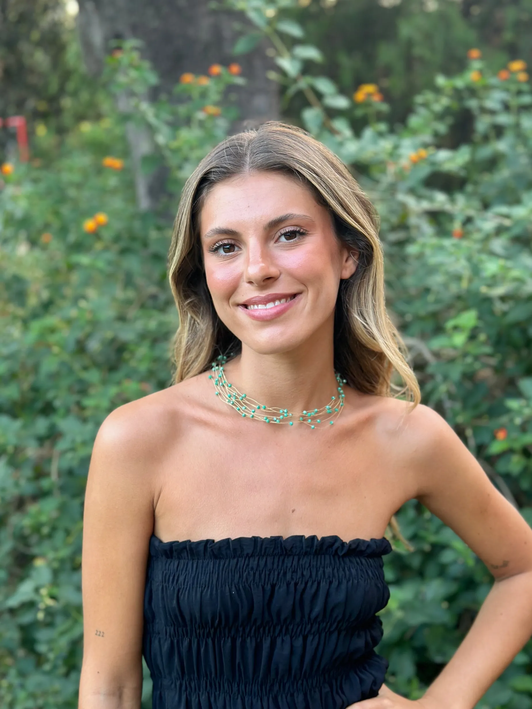 Chcoker dorado con piedras verdes.
