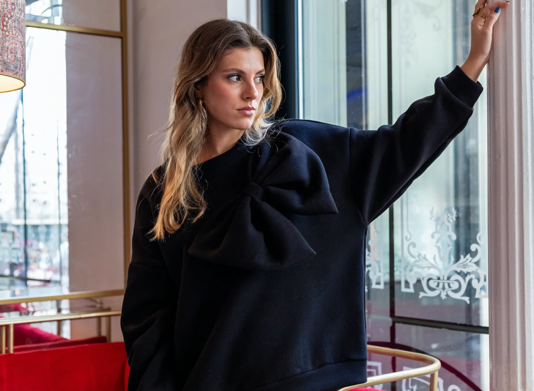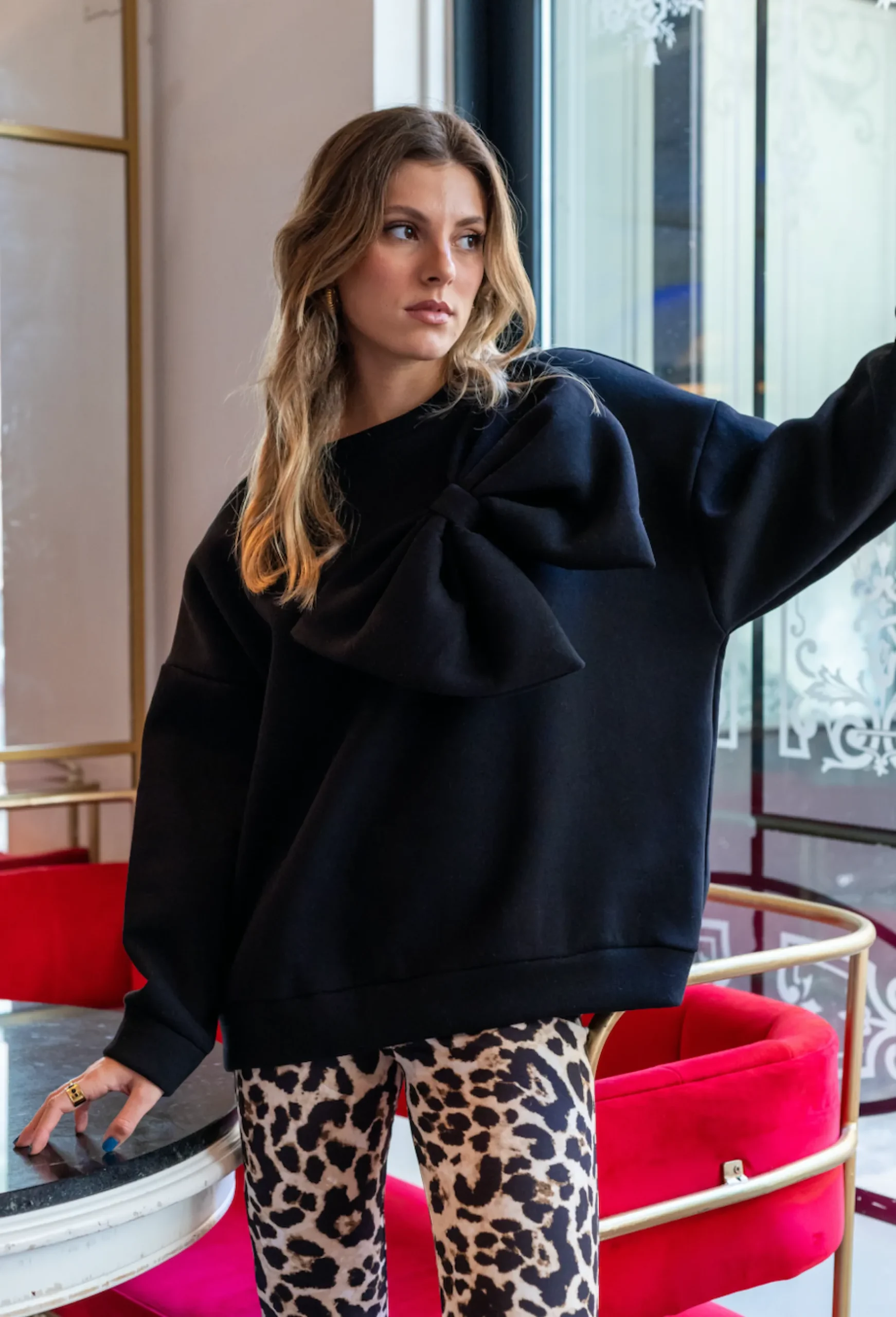 Sudadera con lazo en diagonal.
